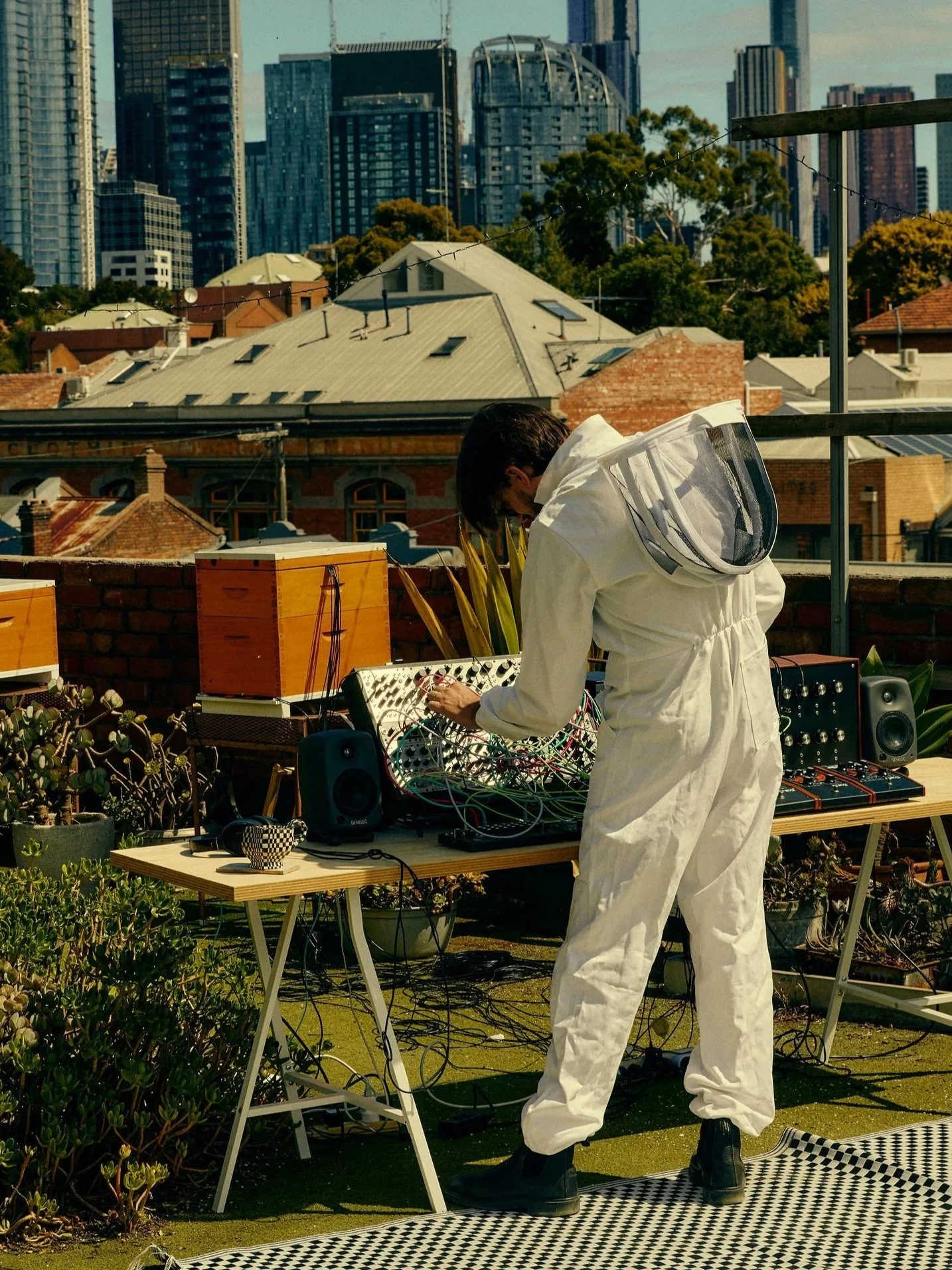 LIVE LISTENING EXPERIENCE // We held an event on Honeyfinger’s Apairy rooftop, inviting guests to experience a once-in-a-lifetime night of live bee music, honey tasting, and local food and wine. Over the course of the event, the score shifted - when the colony was calm, the music was stable and placid and when the colony was lively, so too was the music, constantly mutating and shifting as the sun set against the Melbourne skyline.